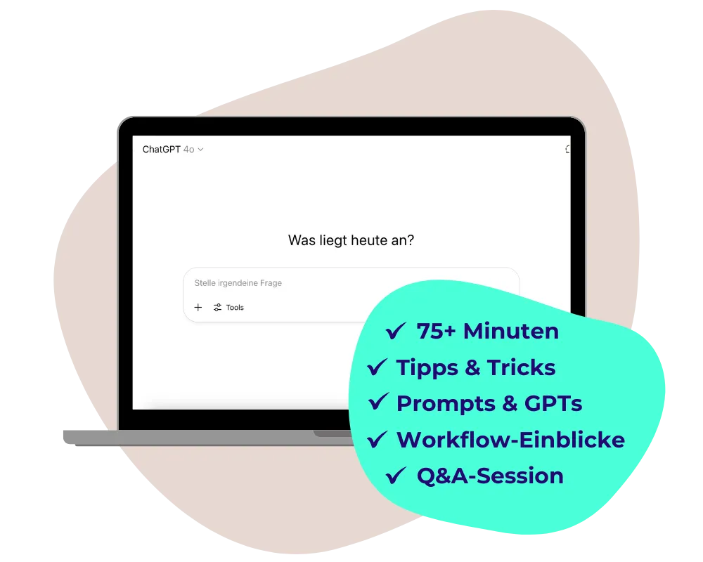 Genau deshalb teile ich in diesem Webinar konkrete Impulse, wie du mit ChatGPT & anderen KI-Tools Zeit sparst, kreativer wirst und Content erstellst, der wirklich nach dir klingt.